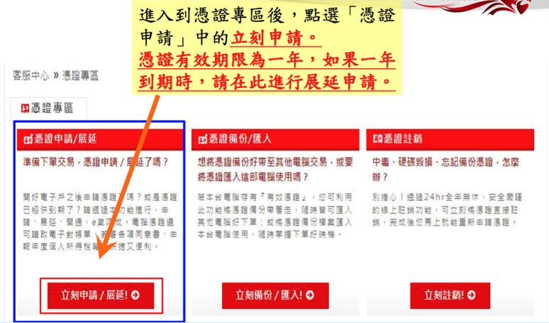 請至官網「憑證專區」下載交易憑證,電腦才能下單!