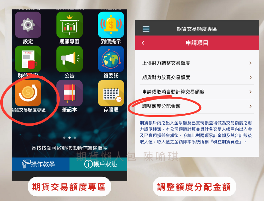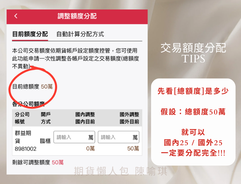 期貨交易額度專區 > 調整額度分配金額