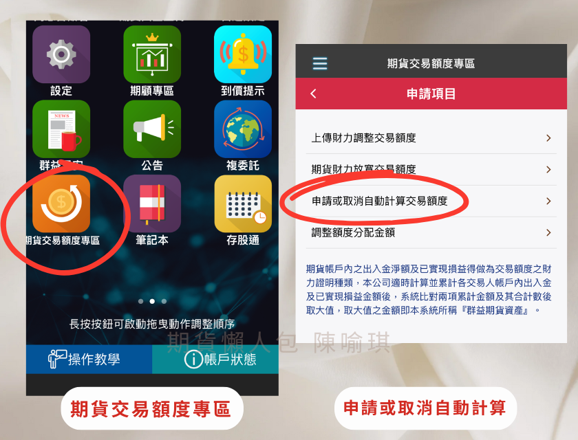 期貨交易額度專區 > 申請或取消自動計算交易額度